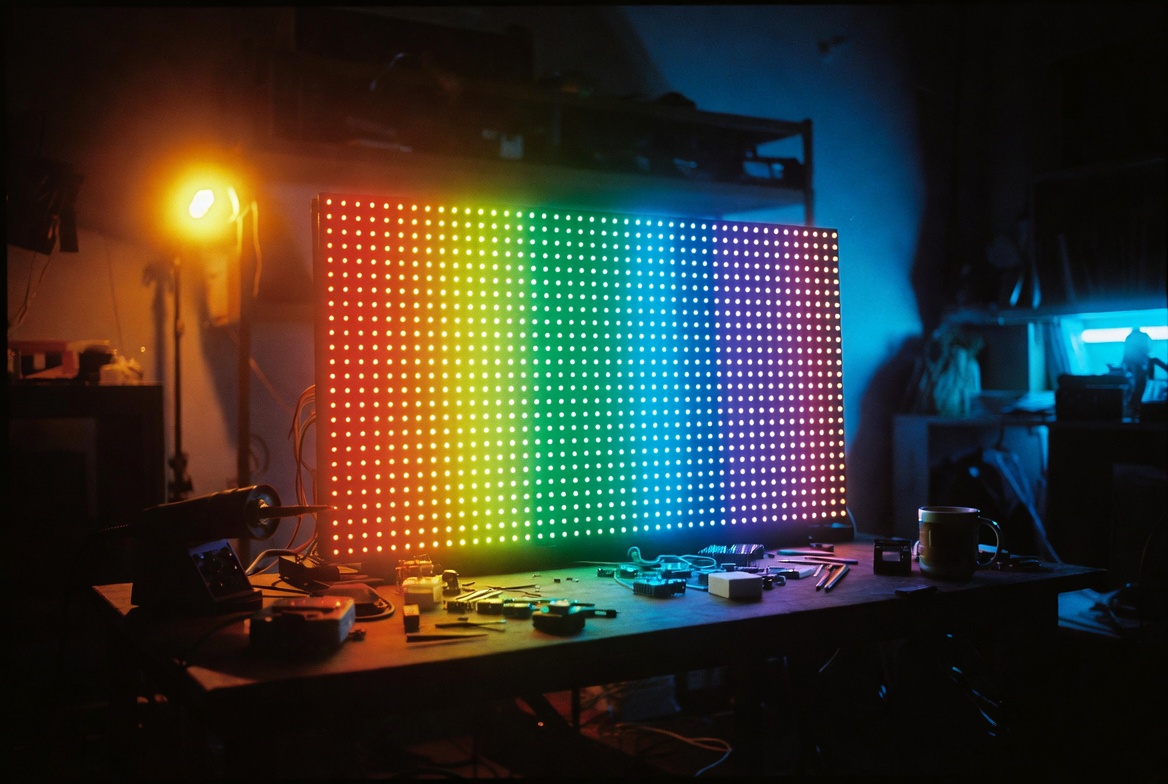 Drive a full-color LED matrix from a Pico or Arduino with the kit we've stocked since the workshop opened. Comes with mounting brackets, ribbon cable and an ESP32 firmware example.